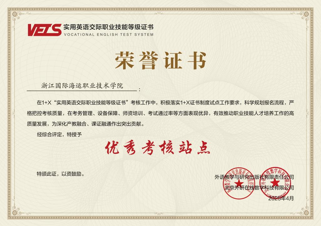 在2024年度“1+X 实用英语交际职业技能等级证书”实施工作评选中,我校凭借在考试组织、教学改革与人才培养等方面的卓越表现,荣获全国优秀试点院校。这是对我校在实用英语交际职业技能培养领域工作的高度认可。