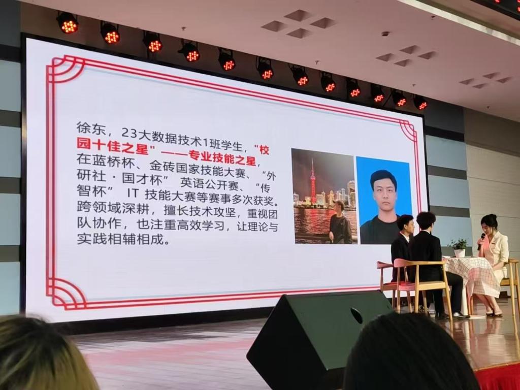 共青团先进访谈环节成为全场焦点。活动先后表彰了2024 年度卡尔・马克思奖、省思政微课、社会实践报告等获奖个人与团队,指导教师庄慧、李晓璐、孙丹晔与学生代表汤云慧、林伊涵、吴佳臻分享了备赛经验与成长感悟,展现了“以赛促学、以学促行”的青春风采。国奖获得者、市学联主席高翔,专业技能之星徐东也畅谈了在技能报国、服务同学中的成长感悟。