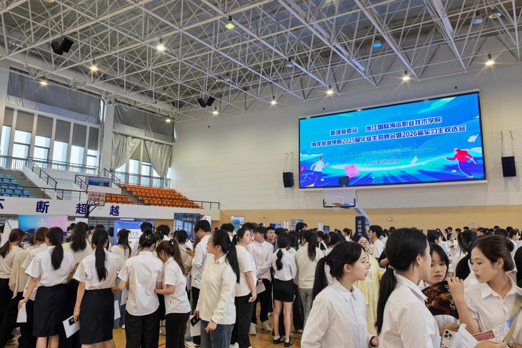 双选会后,学院335名国际邮轮乘务管理专业学生现场与企业达成双选意向,初次达成率为95.7%。(图文/周科玮)