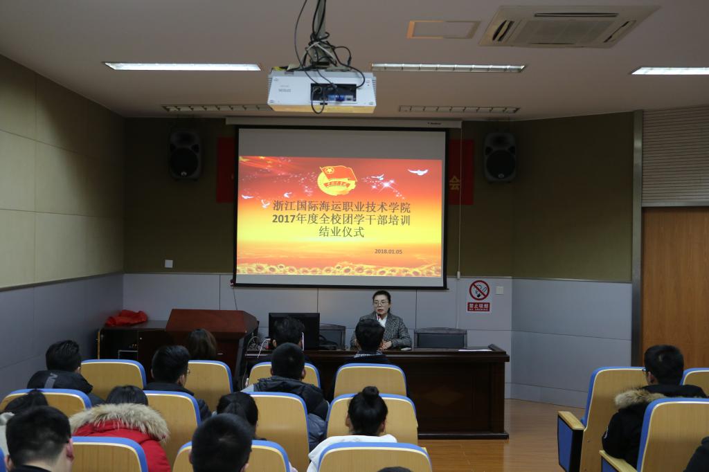 1月5日晚,我校2017年度团学干部培训班结业典礼在万邦厅举行。校团委副书记廉婧和近80名校院二级团学干部参加了结业典礼。