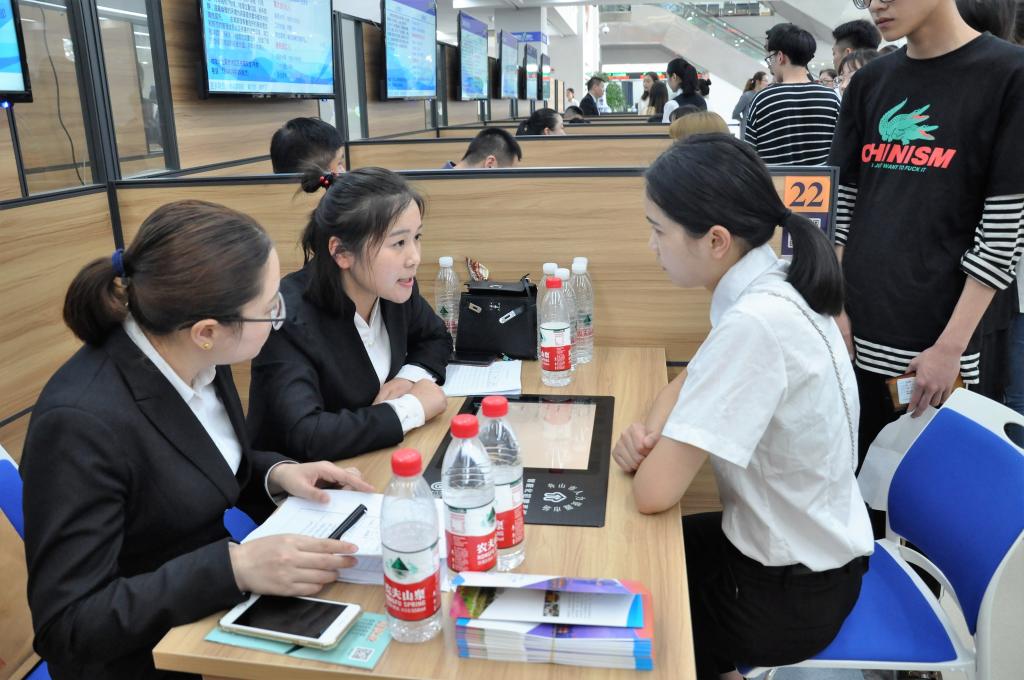 下午两点,海洋旅游学院2018届毕业生就业双选会暨2019届毕业生实习双选会在舟山市人才资源市场进行。学院全体行政、教学团队负责人、辅导员、班主任到会,为学生进行现场指导。双选会场面火爆、气氛热烈,持续了两个半小时。经过企业和学生双方的共同协商,共有280多名学生找到了自己理想的单位和岗位,现场签约率达到93.6%,其中2018届毕业生与舟山企业的就业签约率达到41.5%,2019届毕业生舟山企业实习签约率达41%。