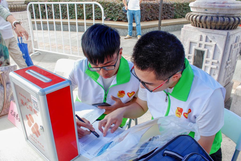 志愿者们早早到达了活动现场,积极开展会场布置、认领申请人登记、引领、仪式协调等各项工作,烈日和高温反而让志愿者们的热情更加高涨、工作越发积极。
