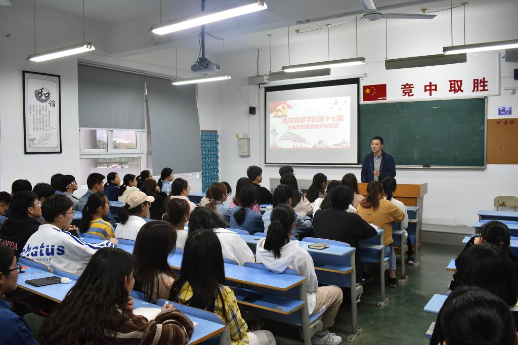 11月7日下午,海洋旅游学院在3205教室举行第十七期业余党校基础班开班仪式,学院党总支书记吴平波、团委书记邬加白以及80名学员参加。