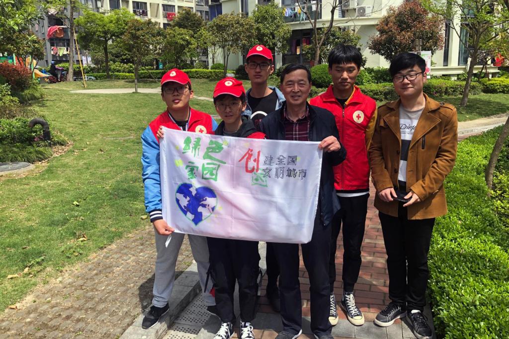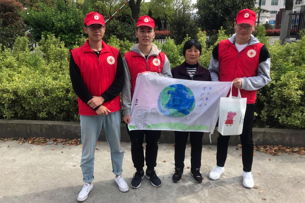 4月22日是世界地球日,为保护世界环境而设。为了迎接世界地球日的到来,唤起大家爱护地球、保护环境的拳拳之心,船舶工程学院红十字分会的“青春热血共创文明城市,暖暖温情守护新区老人”志愿服务队在4月21日组织开展了“创建文明城市,守护蓝色地球”主题宣传活动。志愿者们合力设计绘制了主题宣传旗,分组步行来到服务的社区,面向空巢老人和其他市民宣传环境保护小知识,呼吁大家低碳出行、节约各种资源和能源,并邀请市民在宣传旗上签名合影。