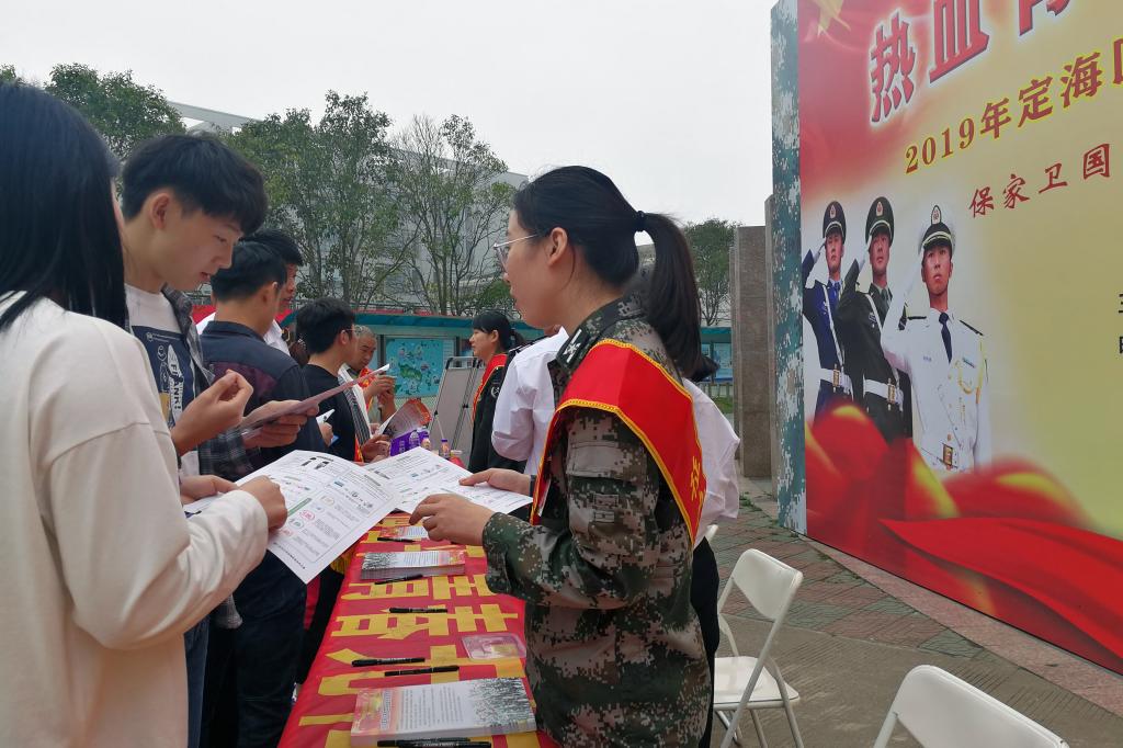 为贯彻落实国家关于征兵工作改革精神,推动征兵工作正规有序开展,帮助大学生进一步熟知大学生应征入伍相关政策及优惠条件,4月25日中午,保卫处(人武部)邀请舟山市定海区人武部在商贸区开展了大学生征兵政策现场咨询活动。