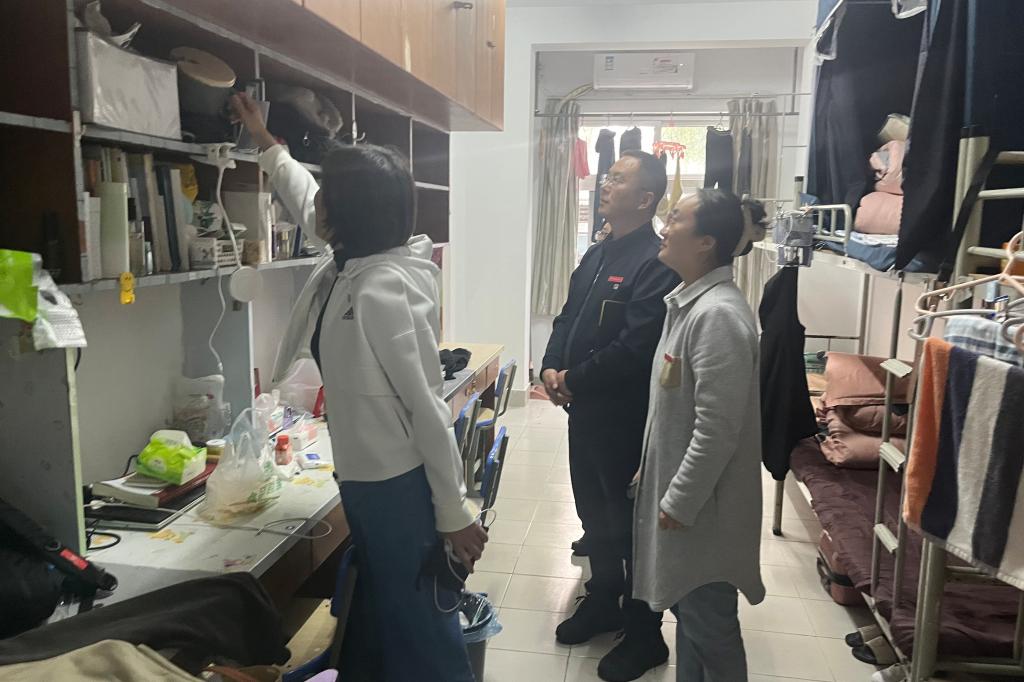 当检查组进入学生宿舍时,同学们纷纷起立问好。孔志光副书记与同学们亲切交流,询问同学们学习、生活和身心健康状况,倾听同学们心声,嘱咐同学们要牢固树立健康生活的意识,养成科学、健康的生活习惯,平衡好学习、生活之间的关系,做好学业规划,提升专业技能。