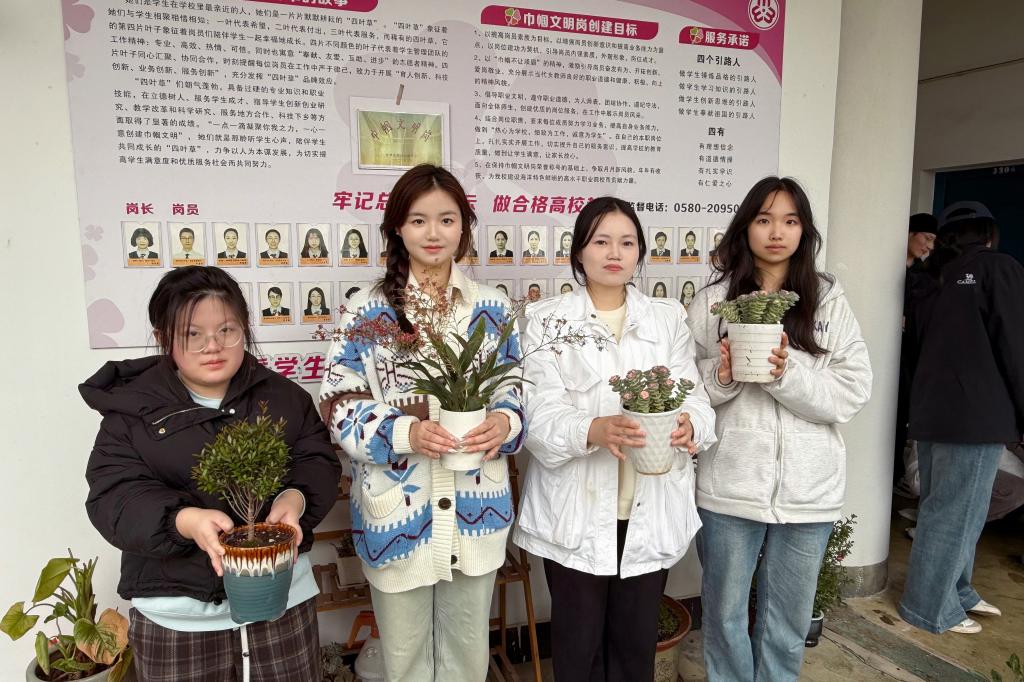 活动现场,师生们热情高涨,早早便来到指定区域,积极领取工具与盆栽。在老师的示范指导下,大家有条不紊地进行植树活动。同学们小心翼翼地将绿植从旧盆中取出,老师则在一旁耐心提醒保护根系的要点。师生们相互协作,有的扶住新盆,有的填土固定,每一个步骤都认真细致,大家一边劳动,一边交流着养护植物的经验,欢笑声与讨论声交织在一起。
