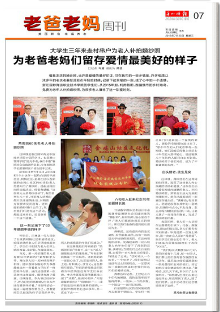 《舟山晚报》:为老爸老妈们留存爱情最美好的样子