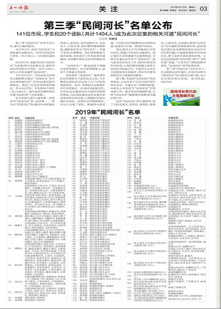 第三季“民间河长”名单公布