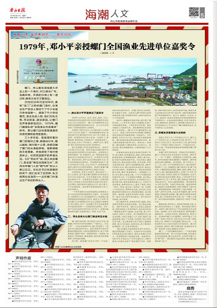1979年,邓小平亲授螺门全国渔业先进单位嘉奖