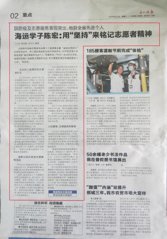 (2020年9月19日《舟山晚报》第2版 原文出处: http://home.zhoushan.cn/newscenter/zsxw/202009/t20200919_986665.shtml)