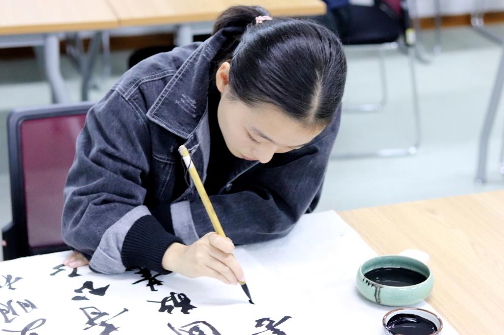 为响应舟山创建全国文明城市的号召,11月15日晚,国际教育学院在1412教室组织开展了“感悟社会主义核心价值观”书法比赛活动。
