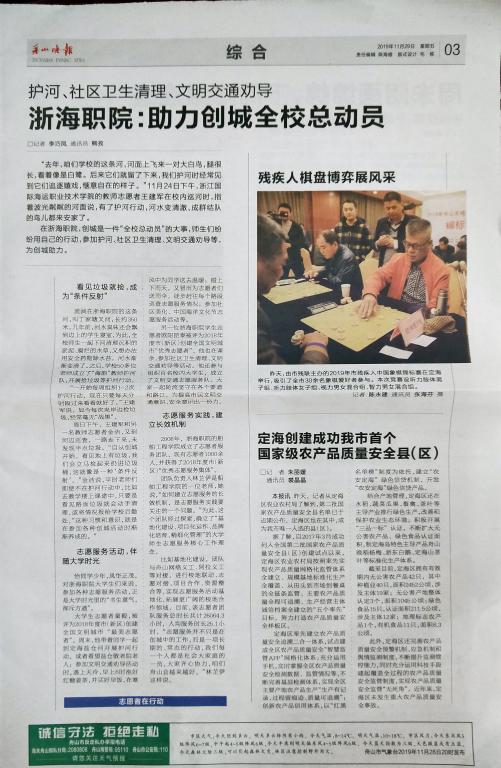 (2019年11月29日《舟山晚报》第3版 http://www.zhoushan.cn/newscenter/zsxw/201911/t20191129_952489.shtml)