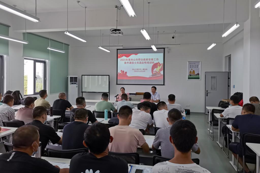 10月15日,舟山市2021年度符合政府安排工作条件退役士兵适应性培训开班仪式在我校顺利举行。本次培训为期3天,由舟山市退役军人事务局主办,我校海洋旅游学院承办。市退役军人事务局副局长陶慧芳出席并作动员讲话,校党委委员、副校长夏志刚到会并致欢迎辞。