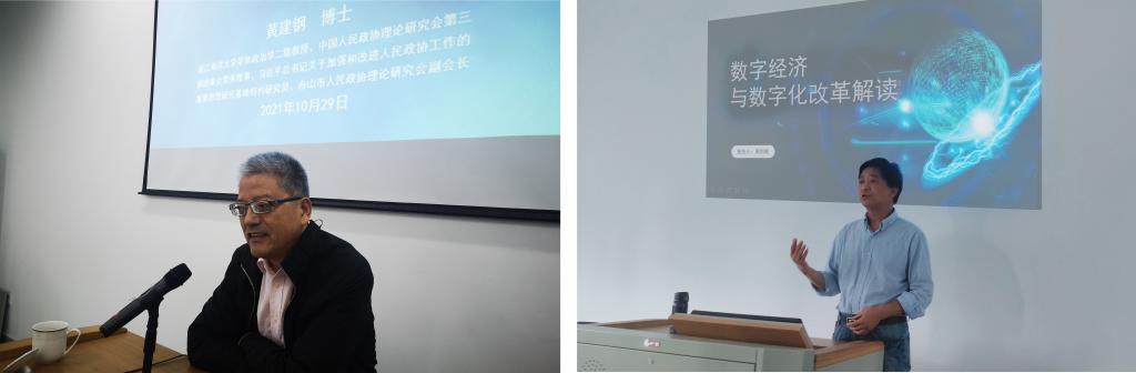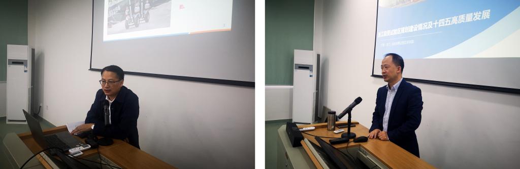 市委政法委副县处长级干部鲍浩宽代表委领导作培训动员。浙江海洋大学二级教授、原党委副书记黄建钢,我校周剑敏教授,市委政法委综治中心主任顾建龙,浙江海洋大学经管学院书记易传剑,市委党校副教授丁友良,普陀区网信办副主任缪增辉分别作了精彩的讲座。培训课程涵盖了自贸区建设发展规划解读、数字化改革与数字法治系统建设、共同富裕“共享”实现形式、突发事件与网络舆情处置等内容。学员们听课之余,利用晚间开展分组研讨,并相互分享借鉴各地各部门的做法和经验。